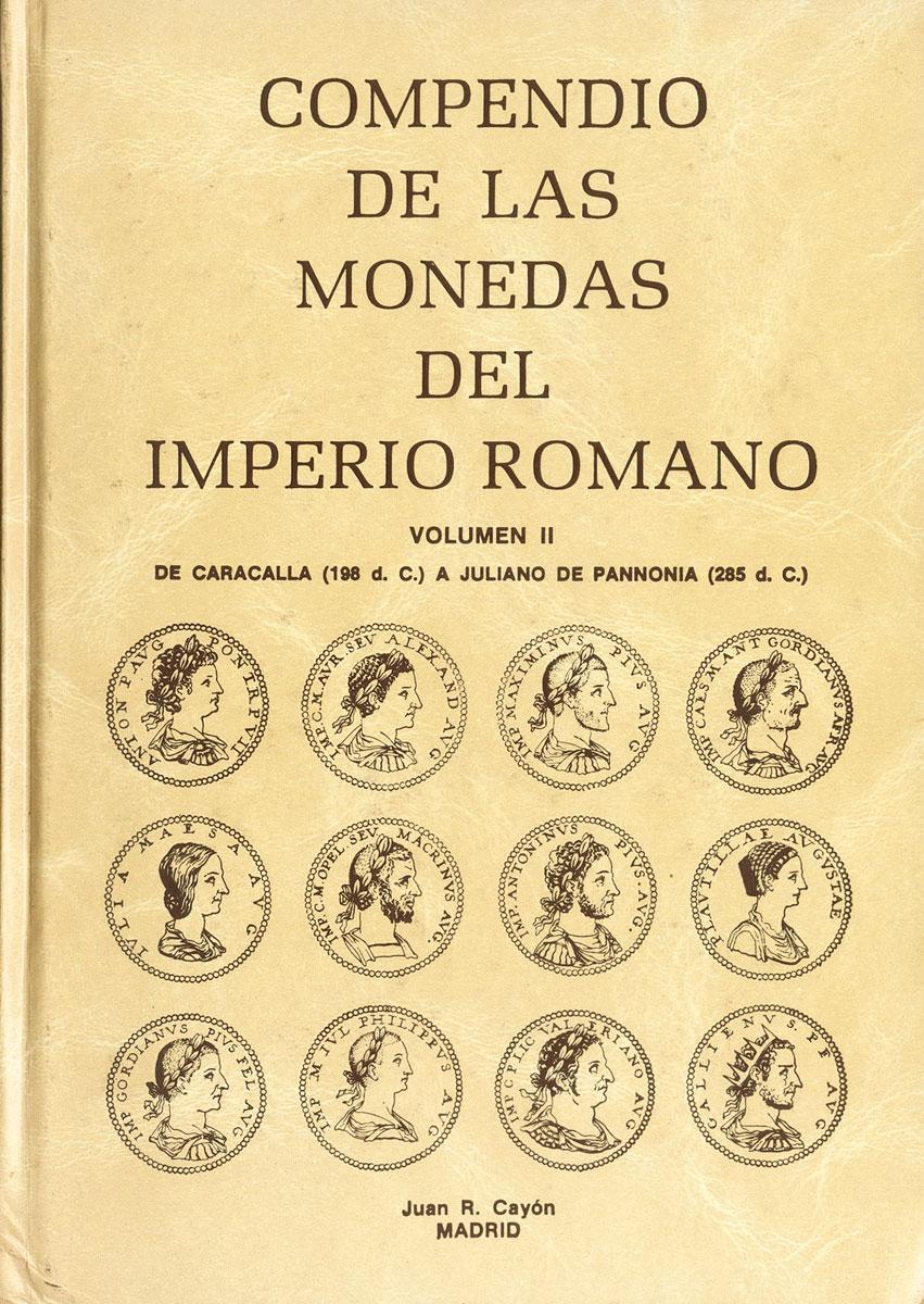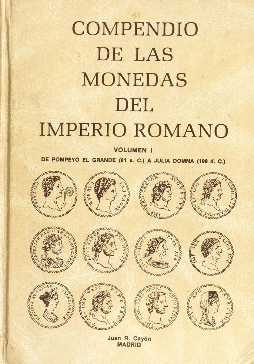 COMPENDIO DE LAS MONEDAS DEL IMPERIO ROMANO, Vol. I y II. Juan R. Cayón, Madrid. 1985.