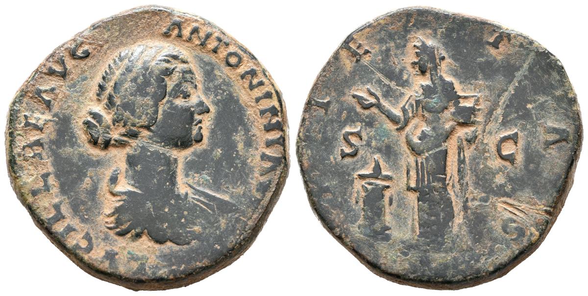 LUCILLA. Sestercio. (Ae. 26,47g/30mm). 164-169 d.C. Roma. (RIC 1756). Anv: Busto drapeado y diademado de Lucilla a derecha, alrededor leyenda: LVCILLAE AVG ANTONINI AVG F. Rev: Pietas estante a izquierda portando patera sobre altar, entre: S-C, alrededor leyenda: PIETAS. MBC-. Limpiado.
