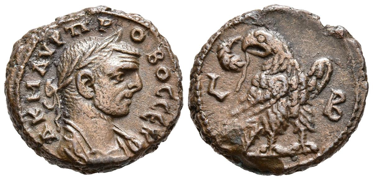 PROBO. Tetradracma. (Ae. 7,02g/20mm). 276-277 d.C. Alejandría. (Emmett 3983). Anv: Busto laureado y con coraza de Probo a derecha, alrededor leyenda griega. Rev: Aguila estante a izquierda portando corona de laurel, entre L-B. EBC.
