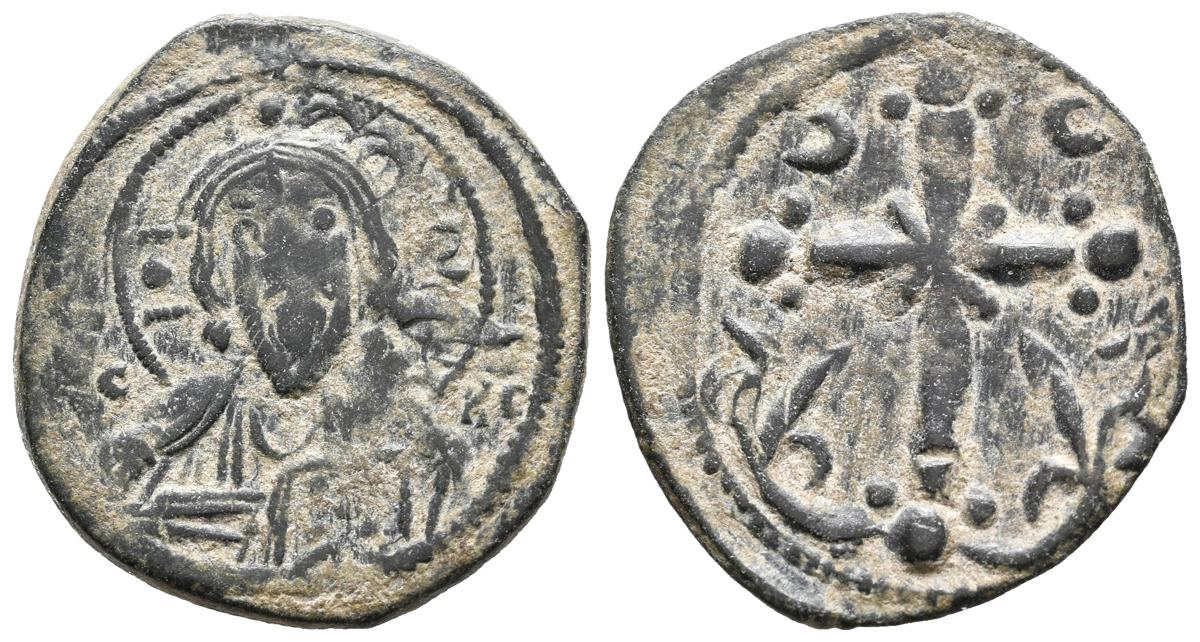 ANONIMA, a nombre de Nicephorus III. Follis. (Ae. 4,71g/24mm). 1075-1080 d.C. Constantinopla. (Seaby 1889). Anv: Busto de Cristo de frente con nimbus cruciger, palio y colobio. Rev: Cruz latina decorada. MBC.