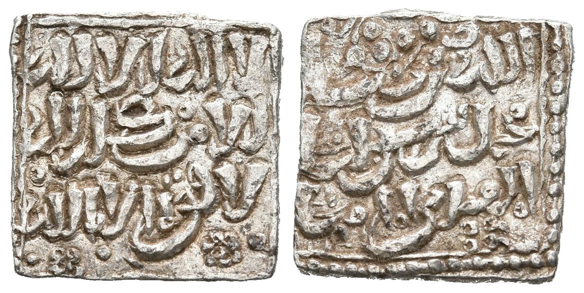 ALMOHADES, Anónimo en nombre de al-Mahdi. Dirham. (Ar. 1,48g/14mm). Sin ceca. (Vives 2088; Hazard 1101). Dos símbolos florales debajo. EBC-.