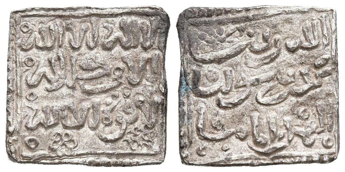 ALMOHADES, Anónima en nombre de al-Mahdi. Dirham. (Ar. 1,41g/14mm). Sin ceca. Dos símbolos florales debajo. (Vives 2088; Hazard 1101). EBC. Brillo original. Bonito ejemplar.