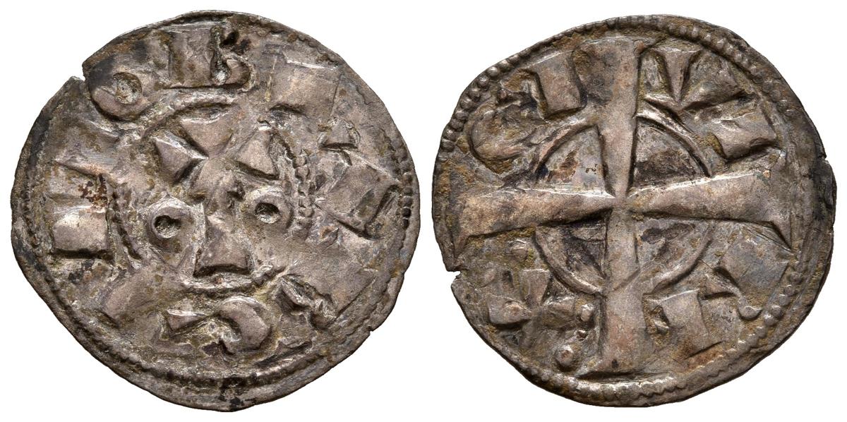 ALFONSO II (1164-1196). Dinero (Ve. 0,97g/20mm). S/D. Barcelona. (Cru. V.S. 296). Anv: Ccruz sobre palo entre anillos, alrededor leyenda: BARQINO. Rev: Cruz, alrededor leyenda: CL VI RE X. MBC.