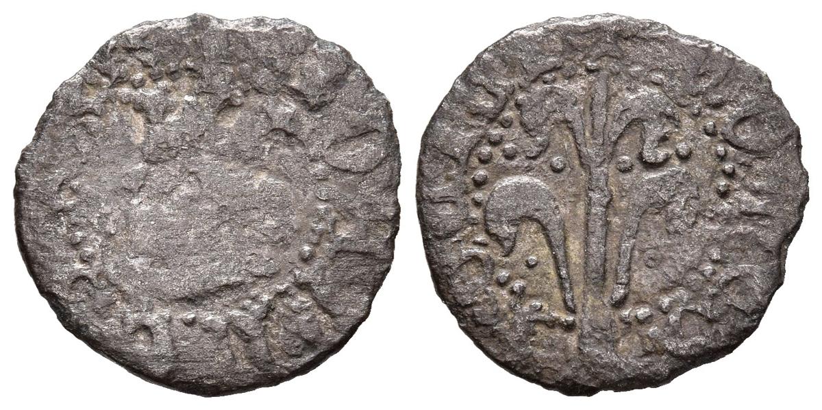 JUAN EL GRANDE (1458-1479). Diner (Ae. 0,76g/15mm). S/D. Perpiñán. (Cru-952). Anv: efigie coronada a izquierda. Leyenda: IOANNES REX. Rev: árbol. Leyenda: COMES ROCILI. RC/BC. Escasa.