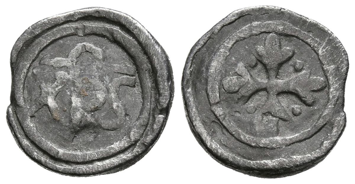 MALLORCA. Pellofa. (Pb. 1,66g/14mm). La seu. (Cru.L. 2435). Anv: XPS superada por letra omega. Rev: Cruz con puntos en los cuadrantes. MBC-.