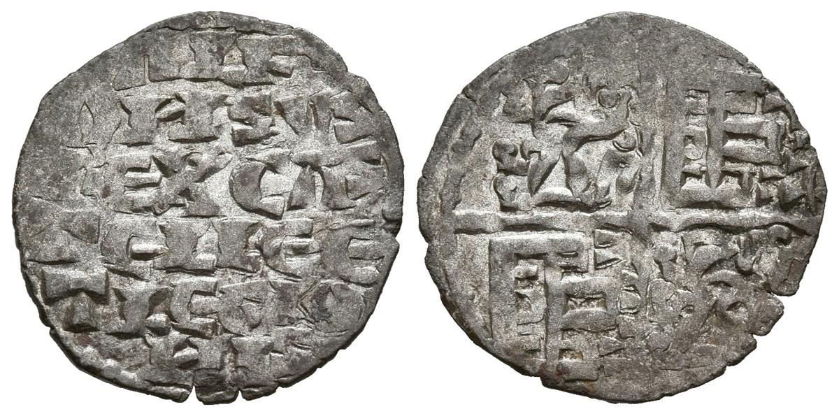 ALFONSO X (1252-1284). Dinero. (Ve. 0,75g/17mm). Coruña. (FAB-230; Imperatrix A10:4.30). Anv: Leyenda en seis líneas: ALF/ONSVS/REX CAS/TELLE E/T LEGIO/NIS. Rev: Castillos en 1º y 4º cuadrante y leones en 2º y 3º cuadrante, venera encima del castillo del 1º cuadrante. MBC.