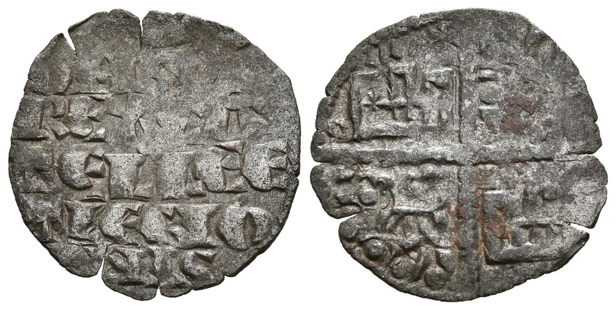 ALFONSO X (1252-1284). Dinero. (Ve. 0,59g/18mm). Marca de ceca: Cruz potenzada. (FAB-235; Imperatrix A10:4.5). Anv: Leyenda en seis líneas: ALFONSVS REX CASTELLE ET LEGIONIS. Rev: Castillos en 1º y 4º cuadrante y leones a la izquierda en 2º y 3º cuadrante, con marca de ceca de cruz potenzada. MBC.