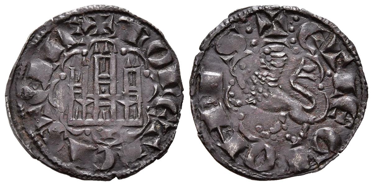 ALFONSO X (1252-1284). Noven (Ve. 0,82g/18mm). S/D. Toledo. (FAB-271). Anv: castillo dentro de grafila lobular y debajo marca de ceca. Leyenda: MONETA CASTELLE. Rev: león a izquierda dentro de gráfila lobular. Leyenda: ET LEGIONIS. MBC.