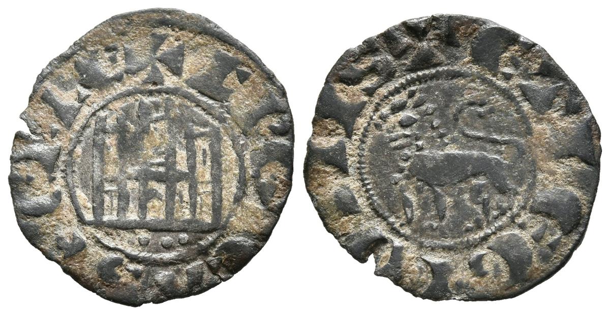 FERNANDO IV (1295-1312). Pepión. (FAB-328; Imperatrix F4:2.43). Anv: Castillo, debajo tres puntos, todo dentro de gráfila circular, alrededor leyenda: F REX CASTELLE. Rev: Leon a izquierda dentro de gráfila circular, alrededor leyenda: ET LEGIONIS. MBC+.