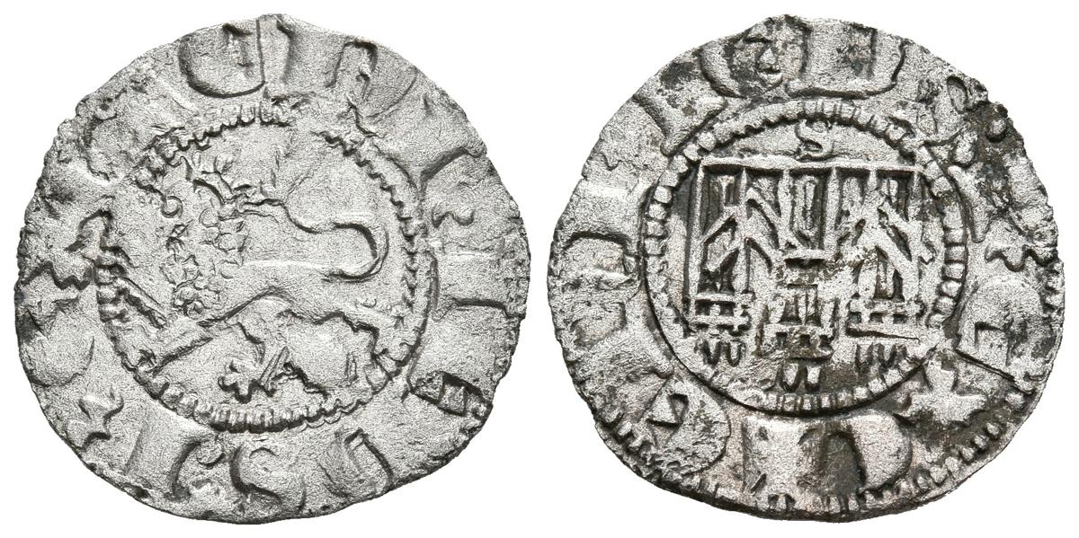 ENRIQUE III (1390-1406). Novén. (Ve. 0,80g/18mm). Sevilla. (FAB-609.2 var). Anv: Castillo, debajo S, todo dentro de gráfila, alrededor leyenda: ENRIEVS REX E. Rev: León rampante dentro de gráfila, alrededor leyenda: ENRICVS REX E. MBC. Variante escasa.