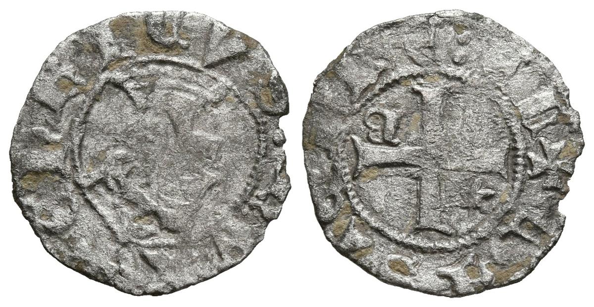 ENRIQUE III (1390-1406). Seisen. (Ve. 0,56g/15mm). Burgos. (FAB-611). Anv: Busto coronado de Enrique III a izquierda dentro de gráfila, alrededor leyenda: ENRICVS REX. Rev: Cruz patada con estrellas en el 2º cuadrante y B tumbada en el 3º cuadrante, dentro de gráfila, alrededor leyenda: CASTELLE EL. MBC. Vellón rico. Escaso.