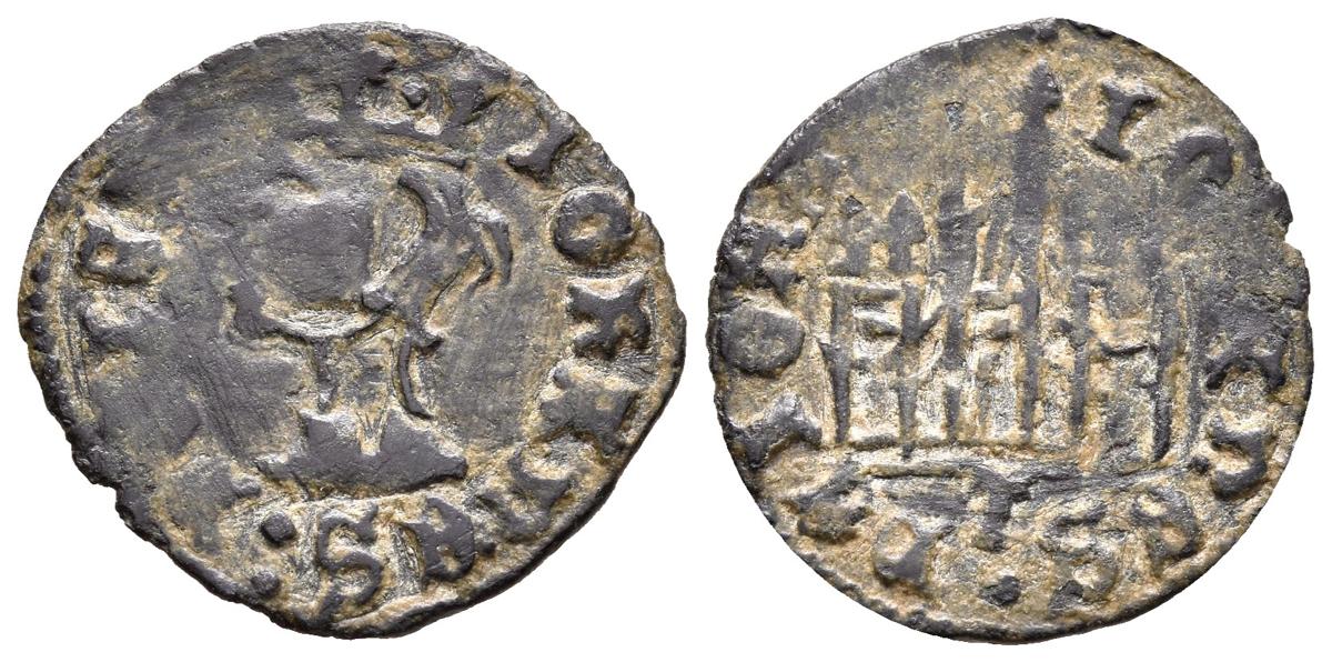 JUAN II (1406-1454). Cornado. (Ve. 0,96g/17mm). Toledo. (FAB-634). Anv: busto coronado a izquierda. Leyenda IOHANES DEI GRA; Rev: castillo y debajo T. Leyenda: IOHANES DEI GRACI. MBC-.