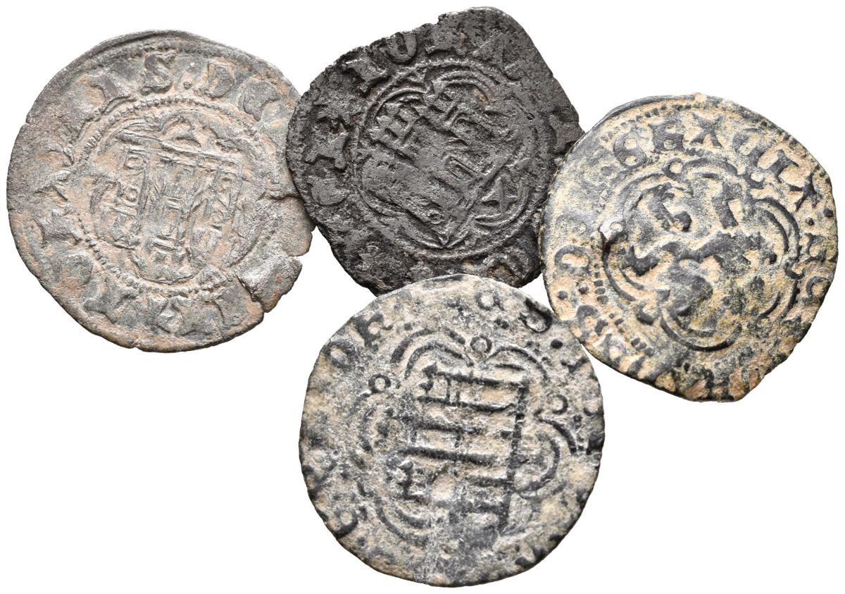 JUAN II (1406-1454). Conjunto de 4 Blancas de las cecas de Burgos y cuenca. A EXAMINAR.