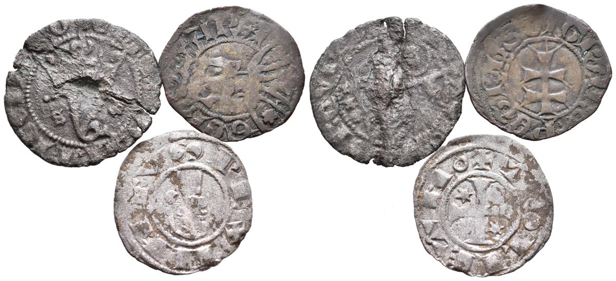 Bonito e interesante conjunto formado por 3 vellones diferentes de Alfonso VIII, Juan I y Pedro IV (dineros y blanca). Diferentes estados de conservación. A EXAMINAR.