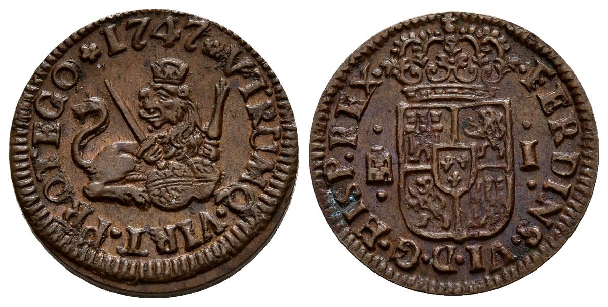 FERNANDO VI (1746-1759). 1 Maravedí. (Ae. 1,19g/15mm). 1747. Segovia. (Cal-2019-19). EBC. Precioso ejemplar.
