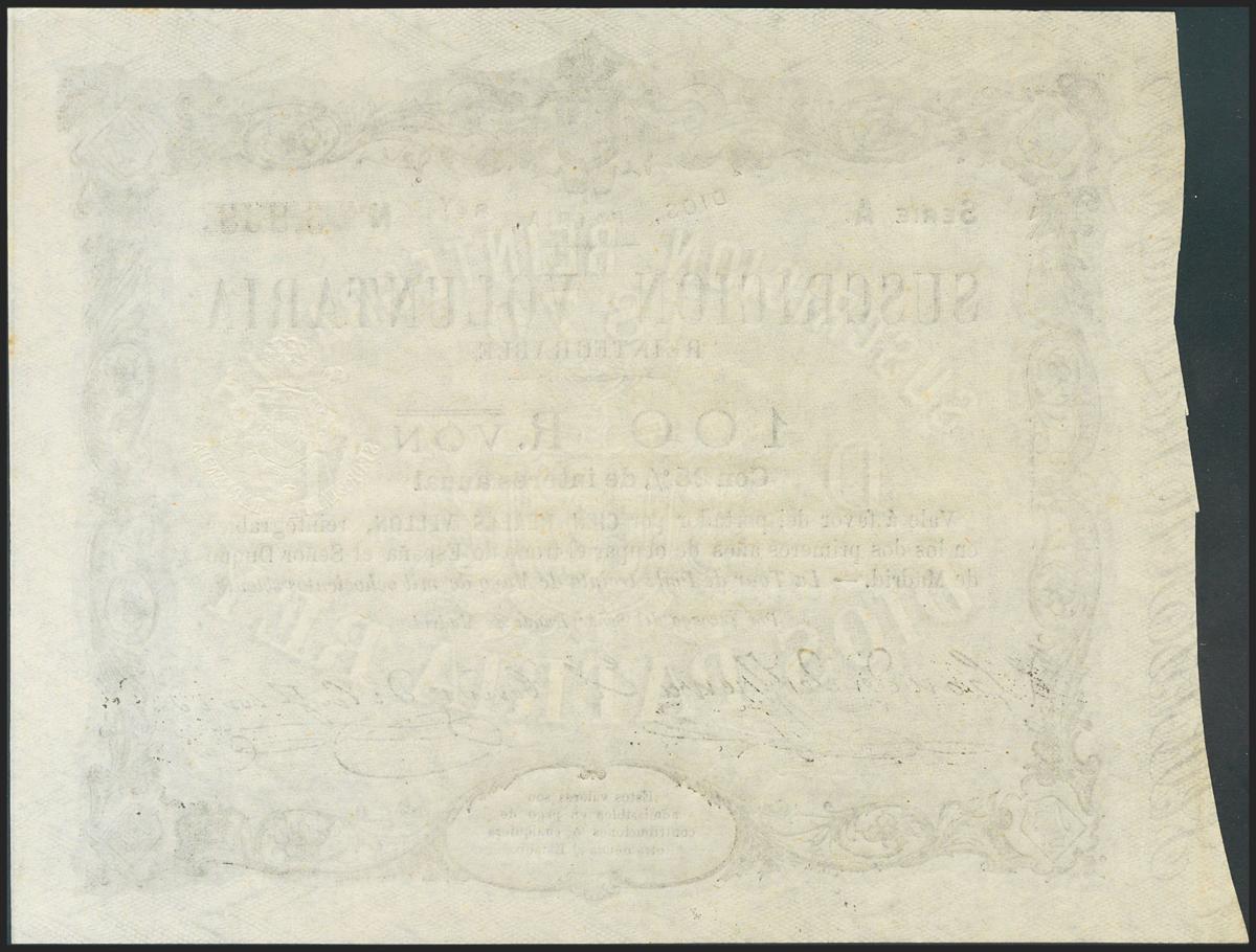 100 Reales de Vellón. 30 de Mayo de 1870. Emisión de Tour de Peilz. Serie A. (Edifil 2021: 196). EBC+.