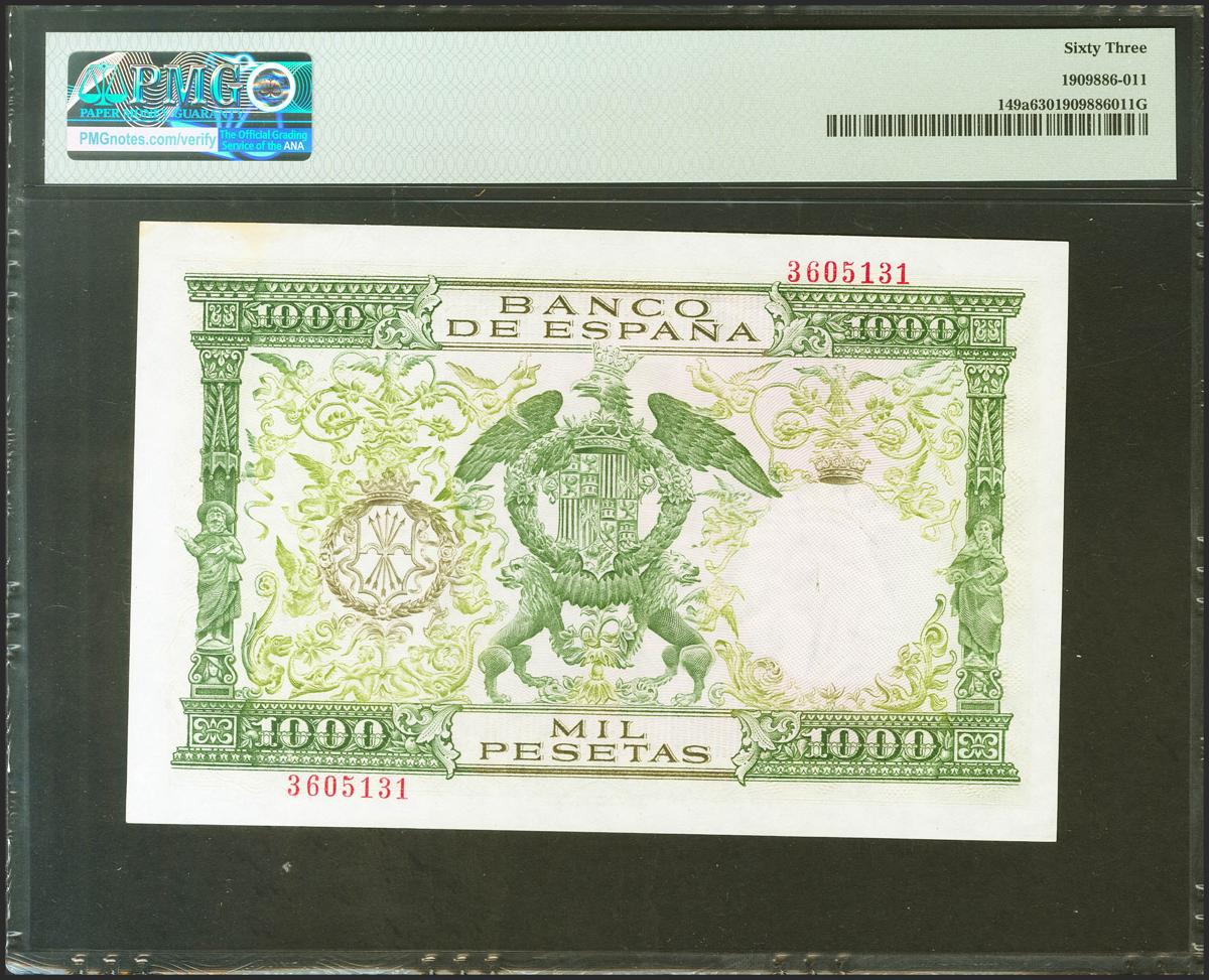 1000 Pesetas. 22 de Noviembre de 1957. Sin serie. (Edifil 2021: 469, Pick: 149a). Raro en esta calidad. SC. Encapsulado PMG63.
