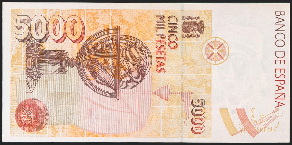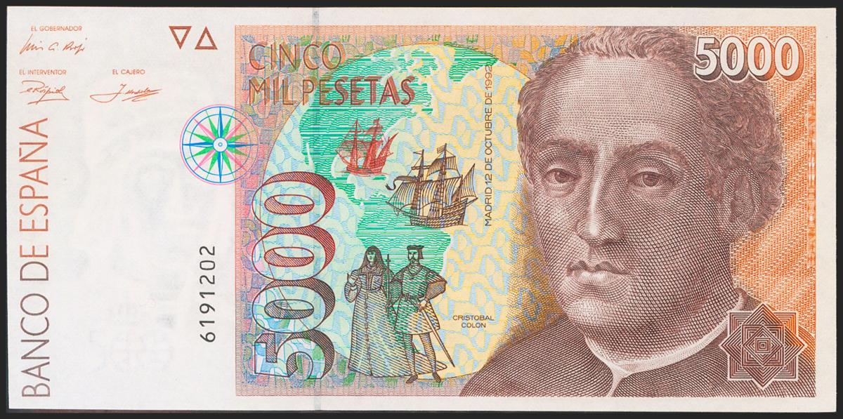 5000 Pesetas. 12 de Octubre de 1992. Sin serie. (Edifil 2021: 484). SC.