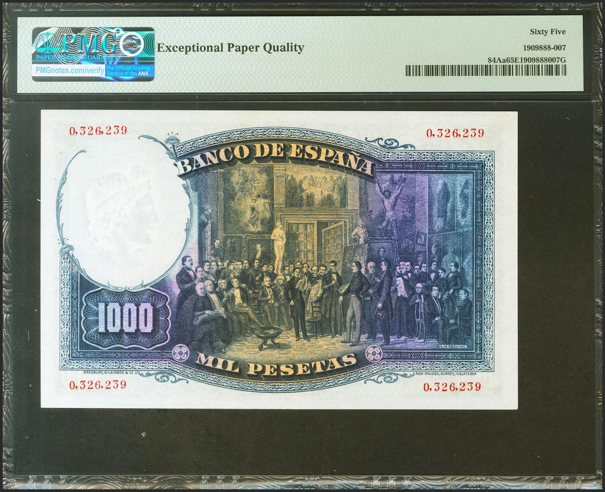 1000 Pesetas. 25 de Abril de 1931. Sin serie. (Edifil 2021: 362, Pick: 84Aa). Conserva todo su apresto original. SC. Encapsulado PMG65EPQ.