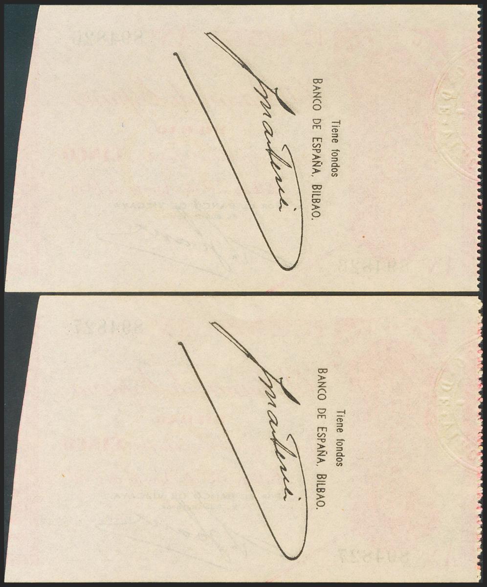 5 Pesetas. 30 de Agosto de 1936. Pareja correlativa. Serie A y antefirma del Banco de Vizcaya. (Edifil 2021: 368Aa). EBC+.