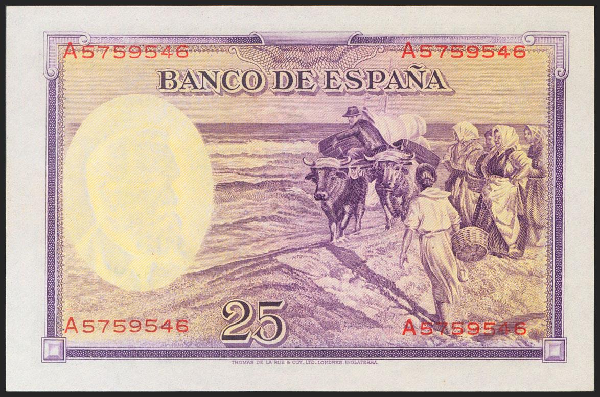 25 Pesetas. 31 de Agosto de 1936. Serie A. (Edifil 2021: 367a). Apresto original. SC-.