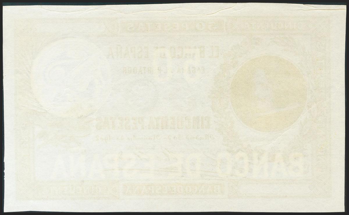 50 Pesetas. 30 de Noviembre de 1902. Prueba de anverso. (Edifil 2017: 309P). Ligerísimos fuelles originales del papel. SC-.