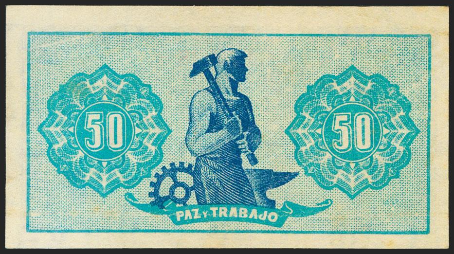 50 Céntimos. 1937. Asturias y León. Sin serie. (Edifil 2021: 396). Muy raro así, apresto original. SC-.