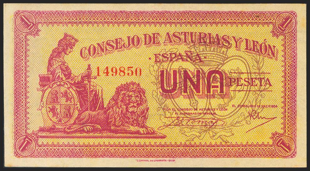 1 Peseta. 1937. Asturias y León. Sin serie. (Edifil 2021: 397). Apresto original. SC.