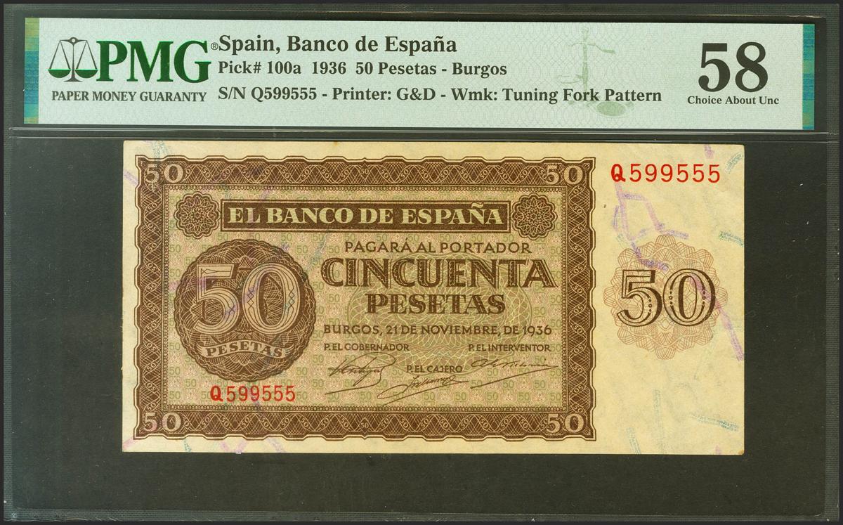 50 Pesetas. 21 de Noviembre de 1936. Serie Q. (Edifil 2021: 420a, Pick: 100a). EBC++. Encapsulado PMG58.