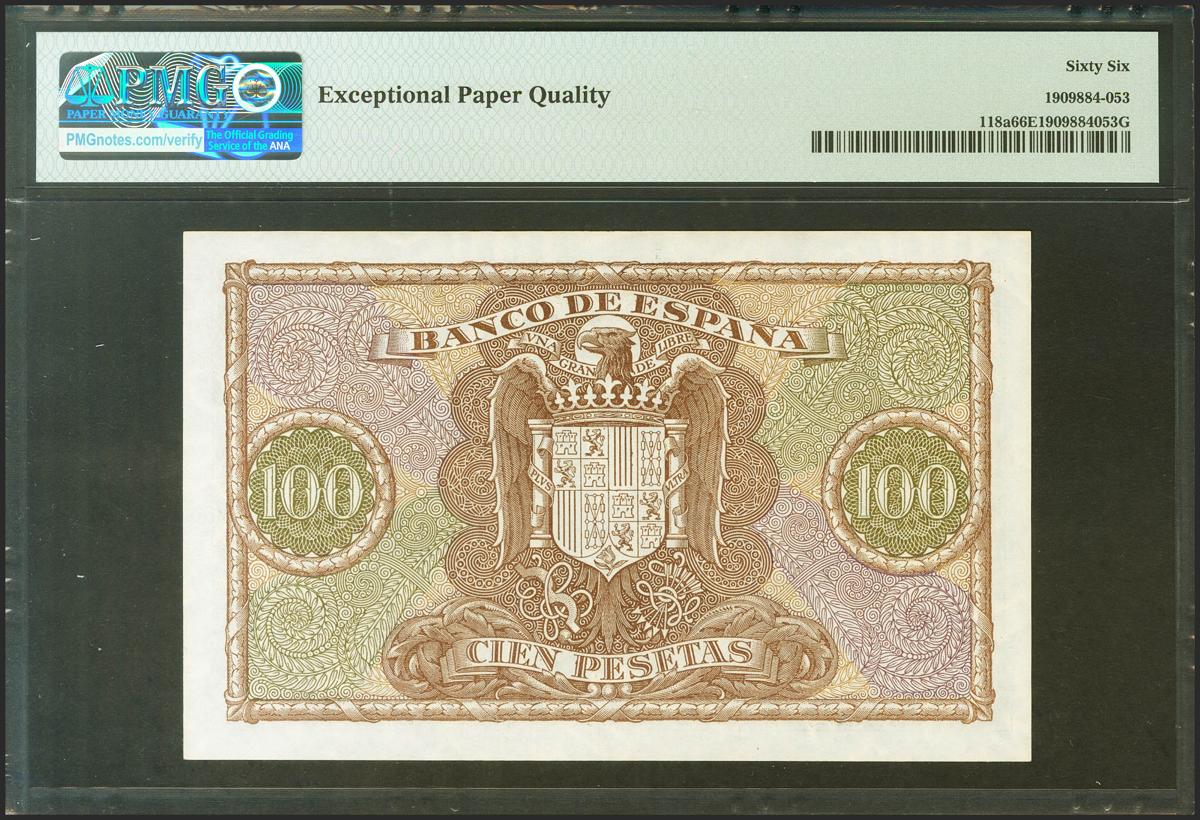 100 Pesetas. 9 de enero de 1940. Serie B. (Edifil 2021: 438a, Pick: 118a). Apresto original. SC. Encapsulado PMG66EPQ.
