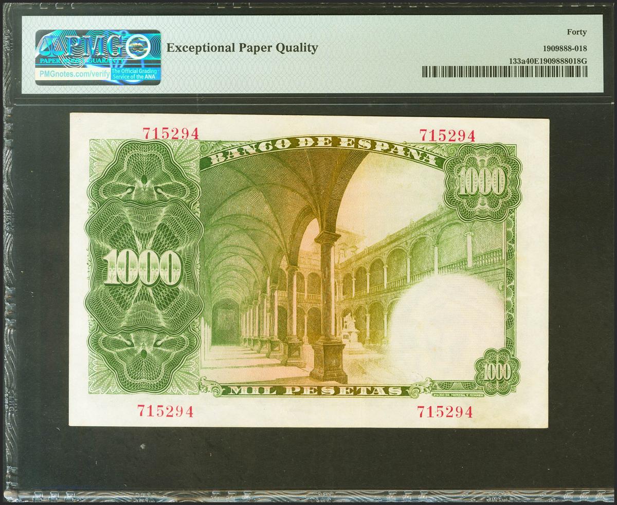 1000 Pesetas. 19 de Febrero de 1946. Sin serie. (Edifil 2021: 453, Pick: 133a). Apresto original. EBC. Encapsulado PMG40EPQ.