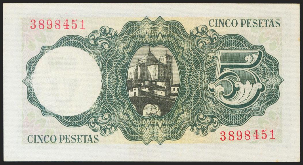 5 Pesetas. 16 de Agosto de 1951. Sin serie. (Edifil 2021: 459). Conserva algo de apresto original. SC-.
