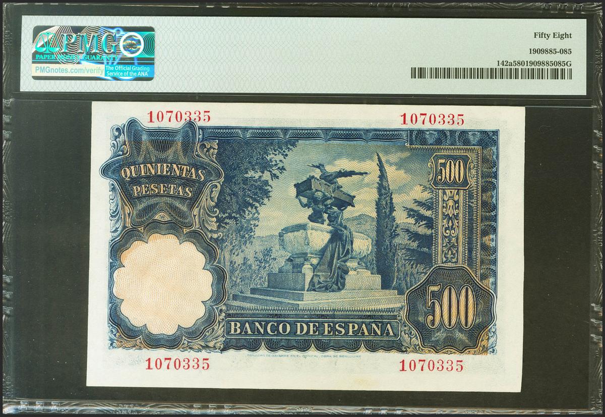 500 Pesetas. 15 de Noviembre de 1951. Sin serie. (Edifil 2021: 460, Pick: 142a). EBC++. Encapsulado PMG58.