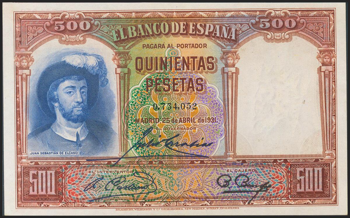 500 Pesetas. 25 de Abril de 1931. Sin serie. (Edifil 2021: 361). Apresto original. EBC+.