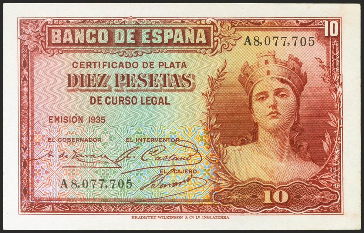 10 Pesetas. 1935. Certificado de Plata. Serie A. (Edifil 2021: 364a). Conserva todo su apresto original. SC-.