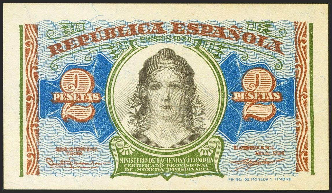 2 Pesetas. 1938. Serie A. (Edifil 2021: 393). Apresto original. SC-.