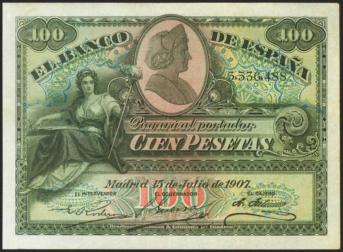 100 Pesetas. 15 de Julio de 1907. Sin serie. (Edifil 2021: 320). MBC.