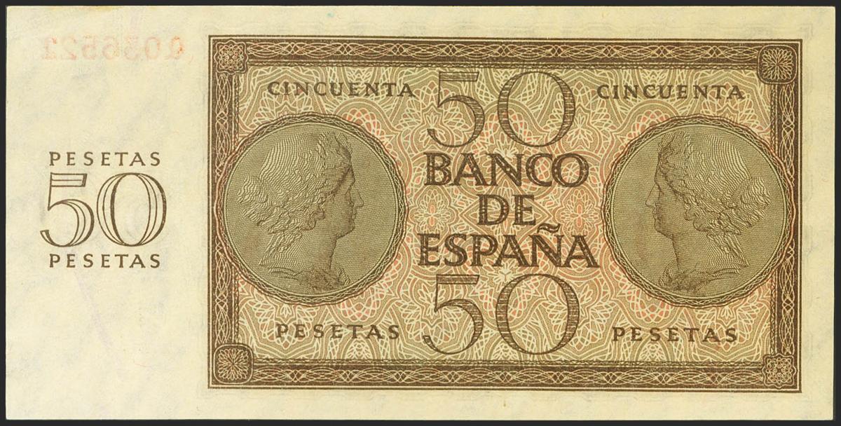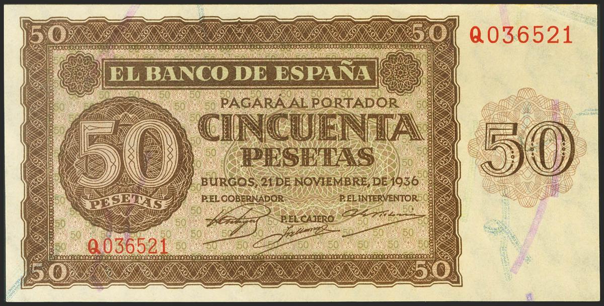 50 Pesetas. 21 de Noviembre de 1936. Serie Q. (Edifil 2021: 420a). Muy raro en esta superlativa calidad, presentando todo su apresto original. SC.