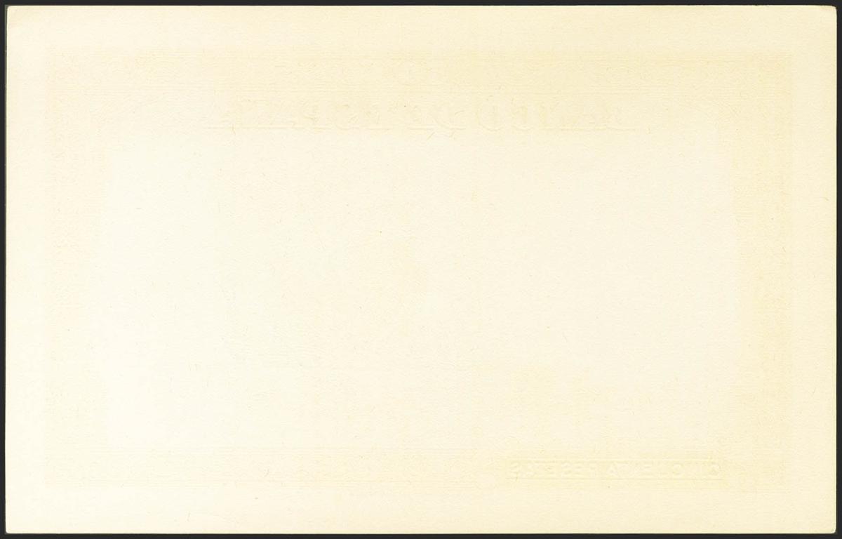 Prueba del anverso sin la viñeta del personaje de un billete no emitido de la imprenta Banconote de Milán, datada en Julio de 1937. (No catalogada, se conocen dos colores). Apresto original, rarísima. SC-.