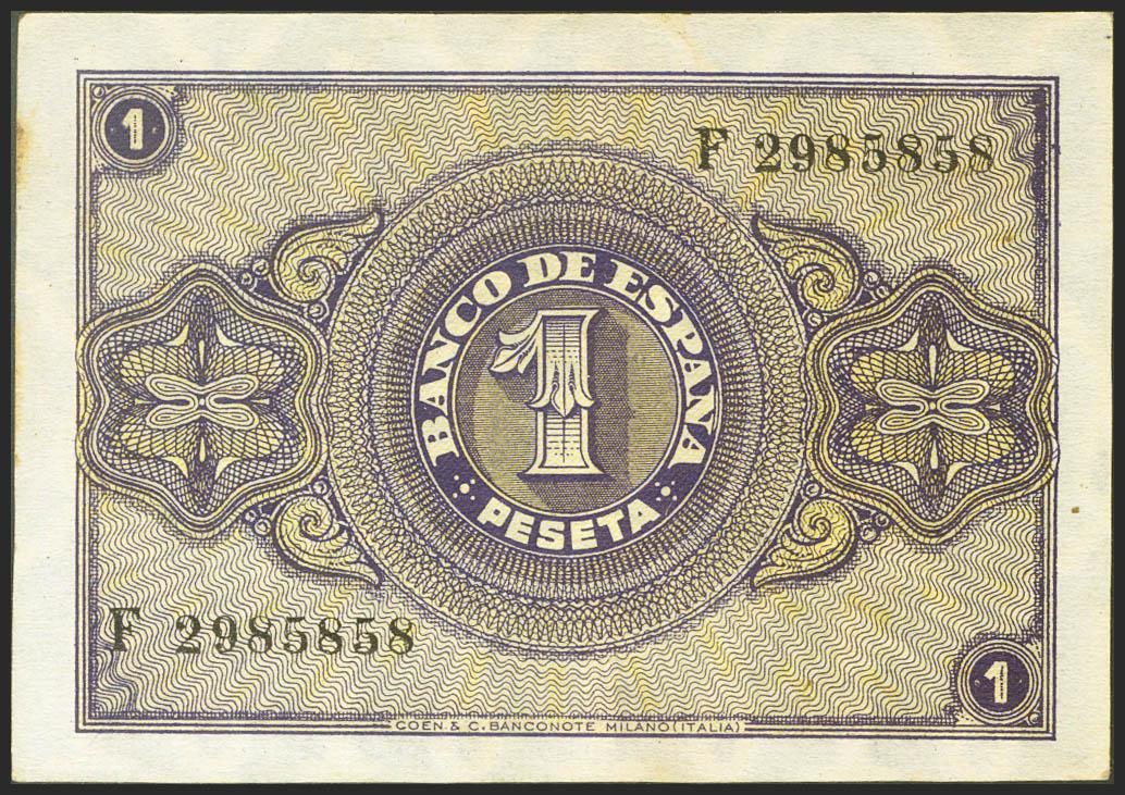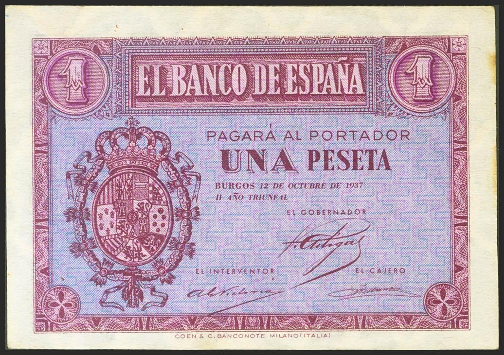 1 Peseta. 12 de Octubre de 1937. Serie F. (Edifil 2021: 425a). Apresto original. SC--.