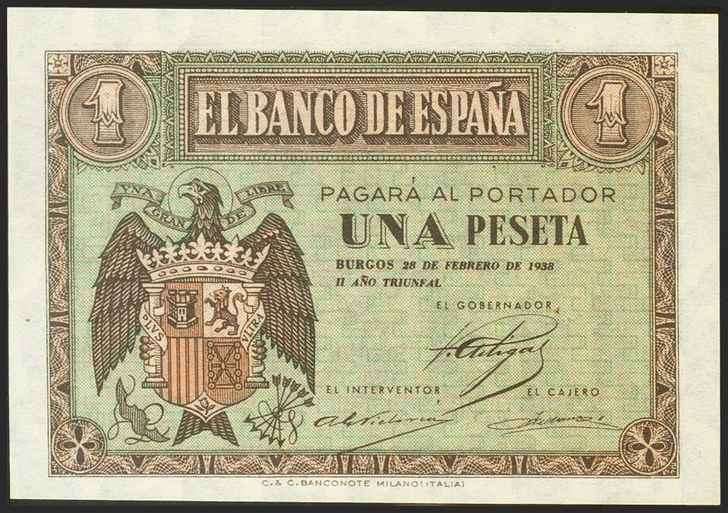 1 Peseta. 28 de Febrero de 1938. Serie E. (Edifil 2021: 427a). Apresto original. SC-.