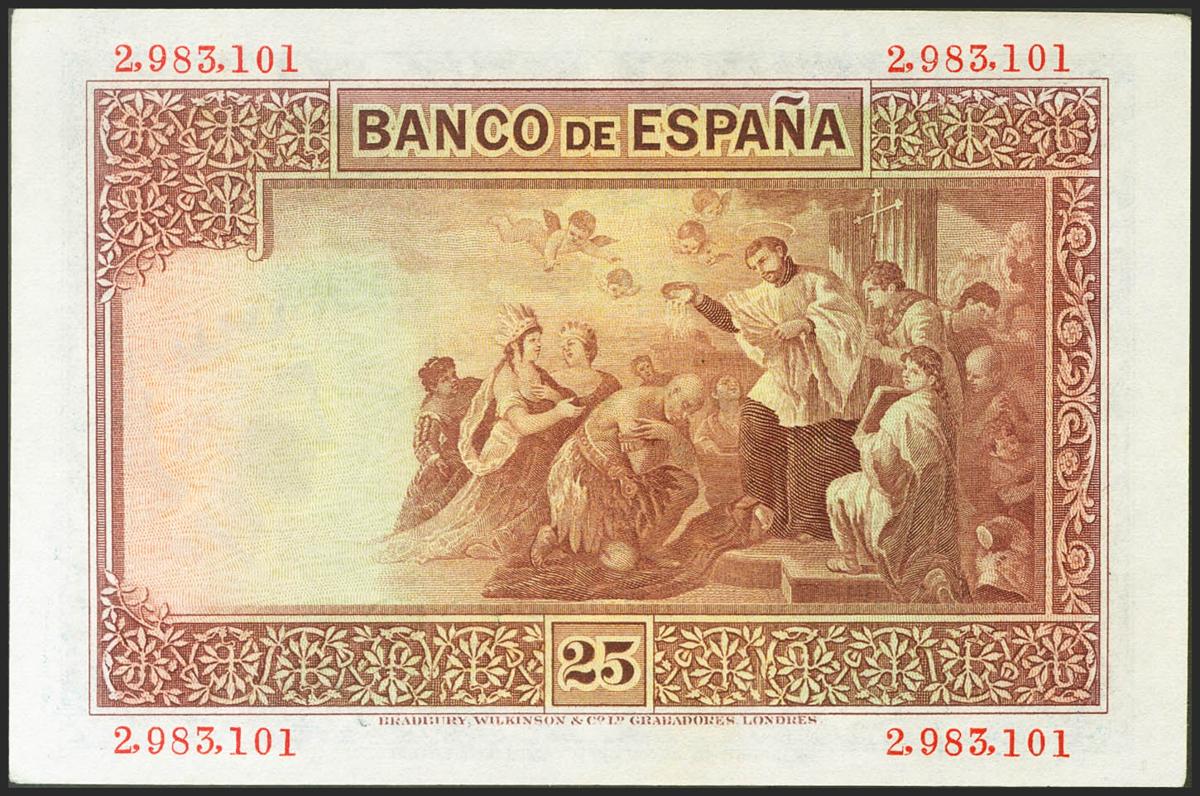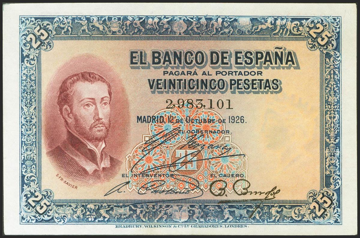 25 Pesetas. 12 de Octubre de 1926. Sin serie. (Edifil 2021: 323). Conserva parte del apresto original. EBC.