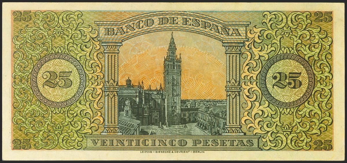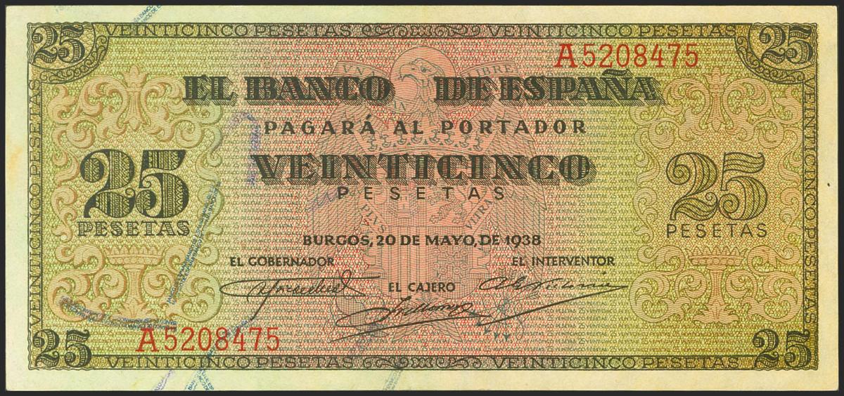 25 Pesetas. 20 de Mayo de 1938. Serie A. (Edifil 2021: 430). Presenta parte del apresto original. EBC.
