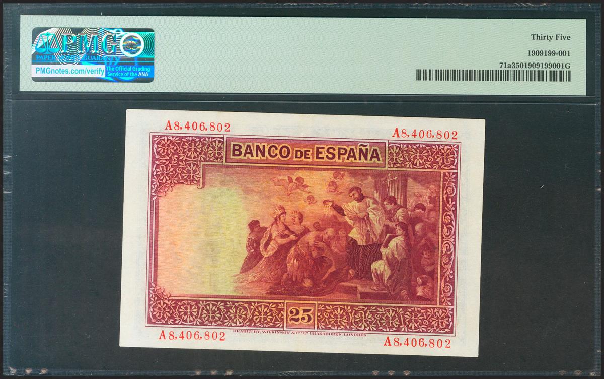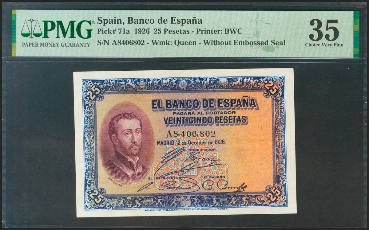 25 Pesetas. 12 de Octubre de 1926. Serie A. (Edifil 2021: 325a, Pick: 71a). EBC. Encapsulado PMG35.