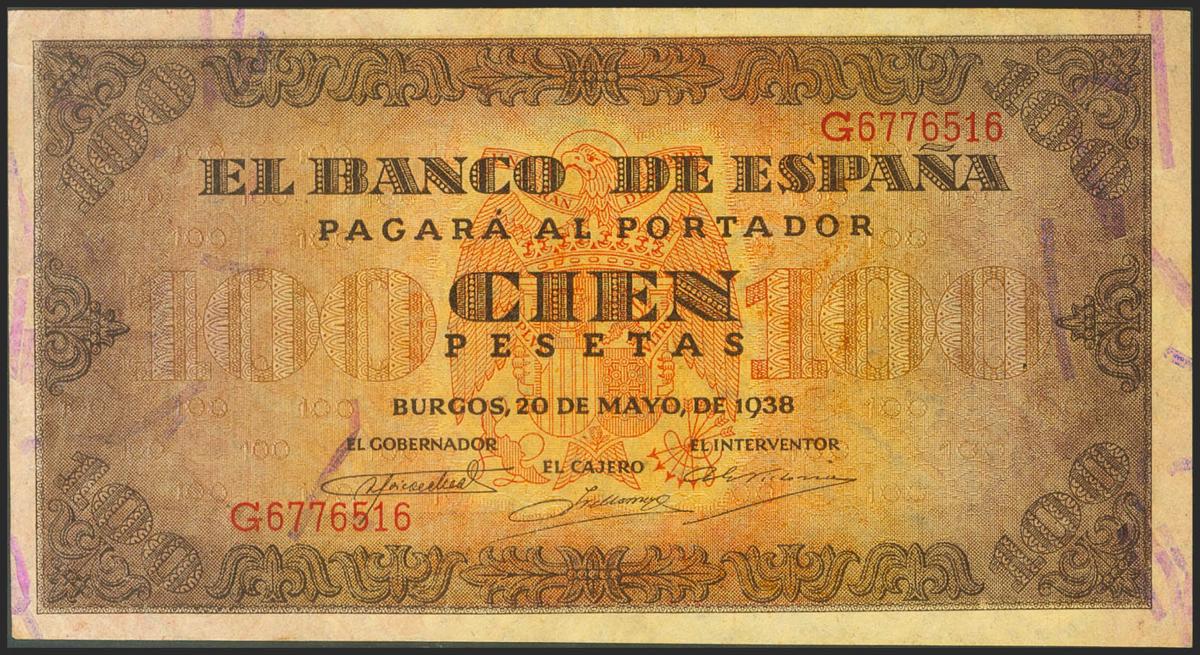 100 Pesetas. 20 de Mayo de 1938. Serie G. (Edifil 2021: 432a). Conserva parte de su apresto original. EBC.