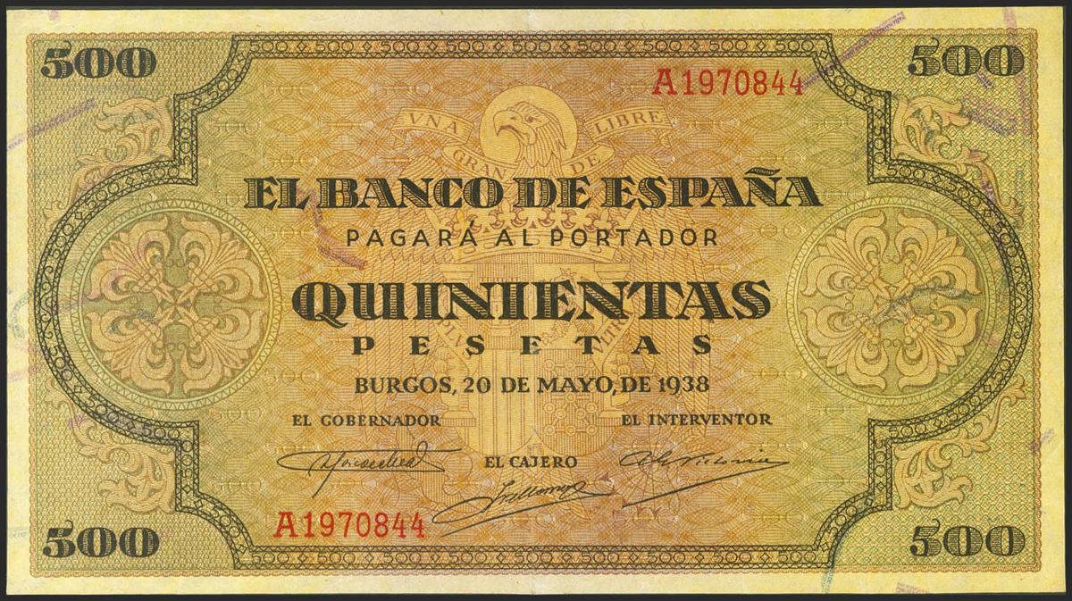 500 Pesetas. 20 de Mayo de 1938. Serie A. (Edifil 2021: 433). MBC.