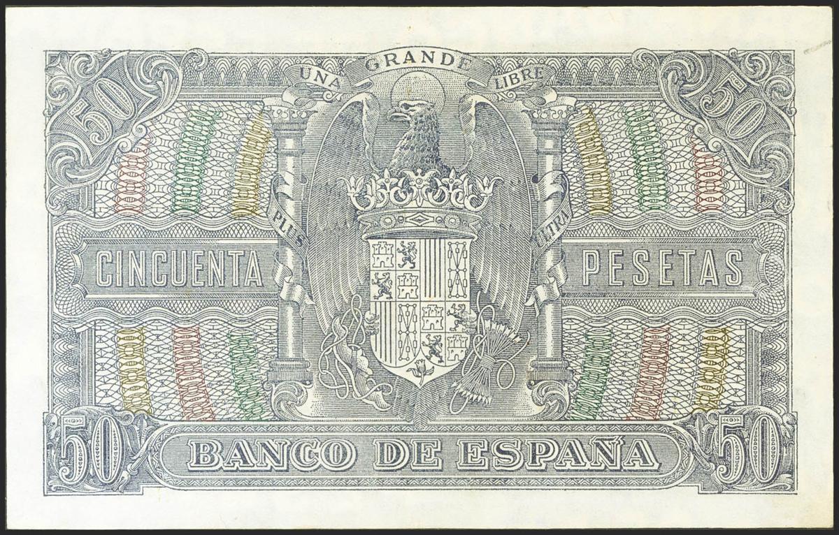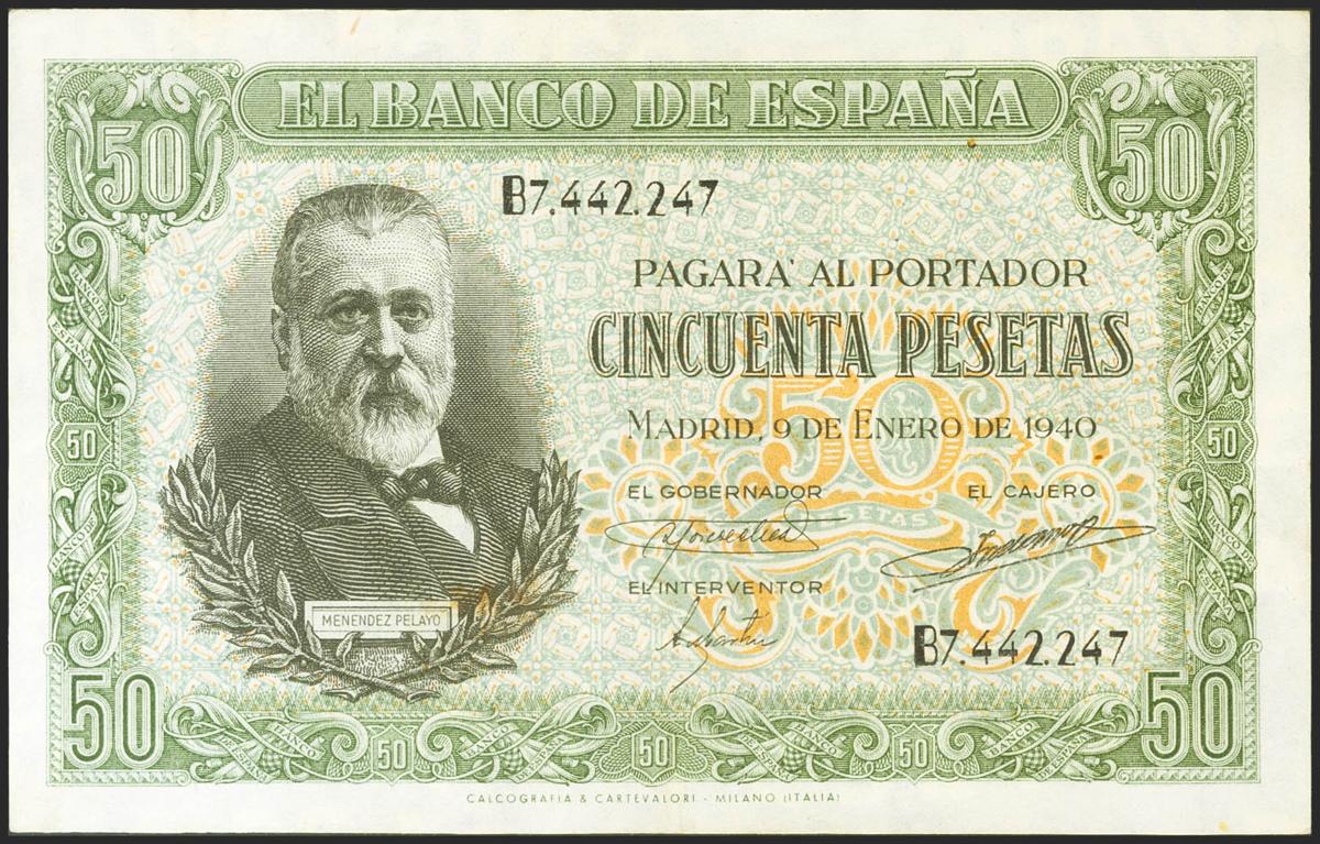 50 Pesetas. 9 de Enero de 1940. Serie B. (Edifil 2021: 437a). Conserva gran parte del apresto original. EBC.