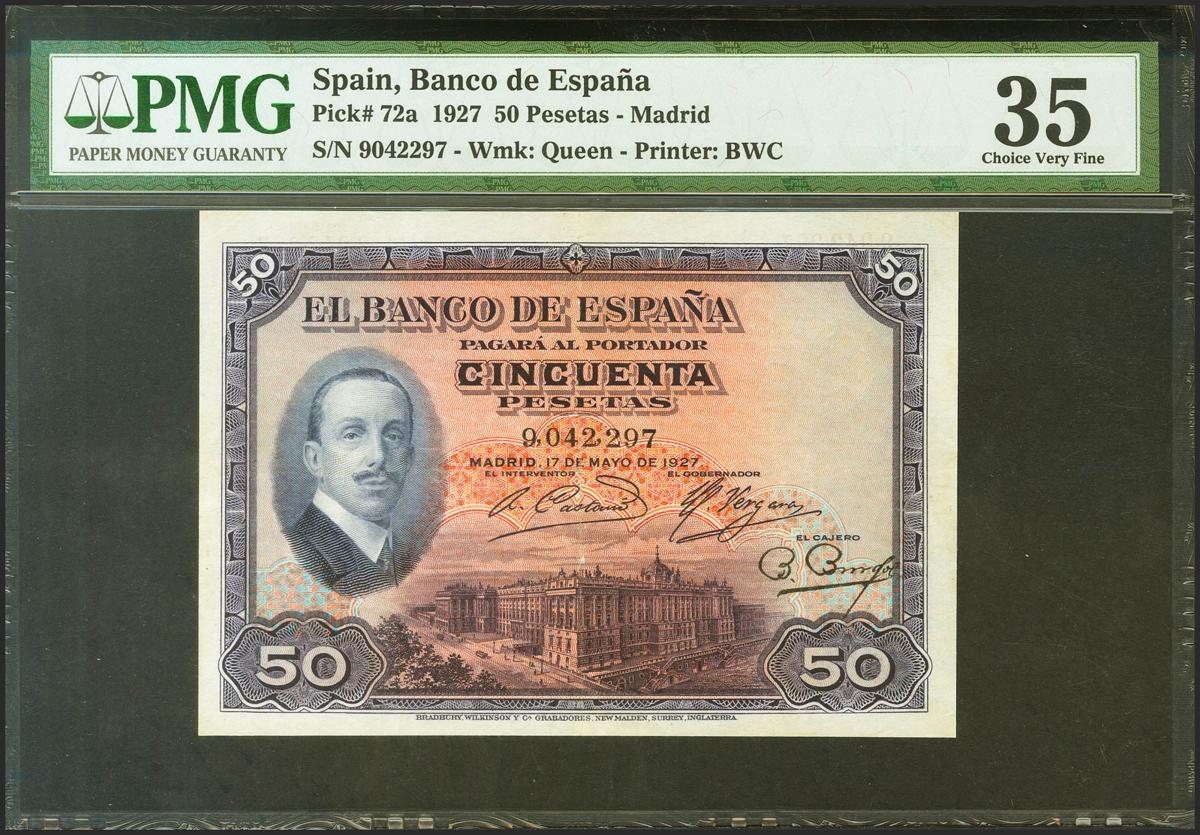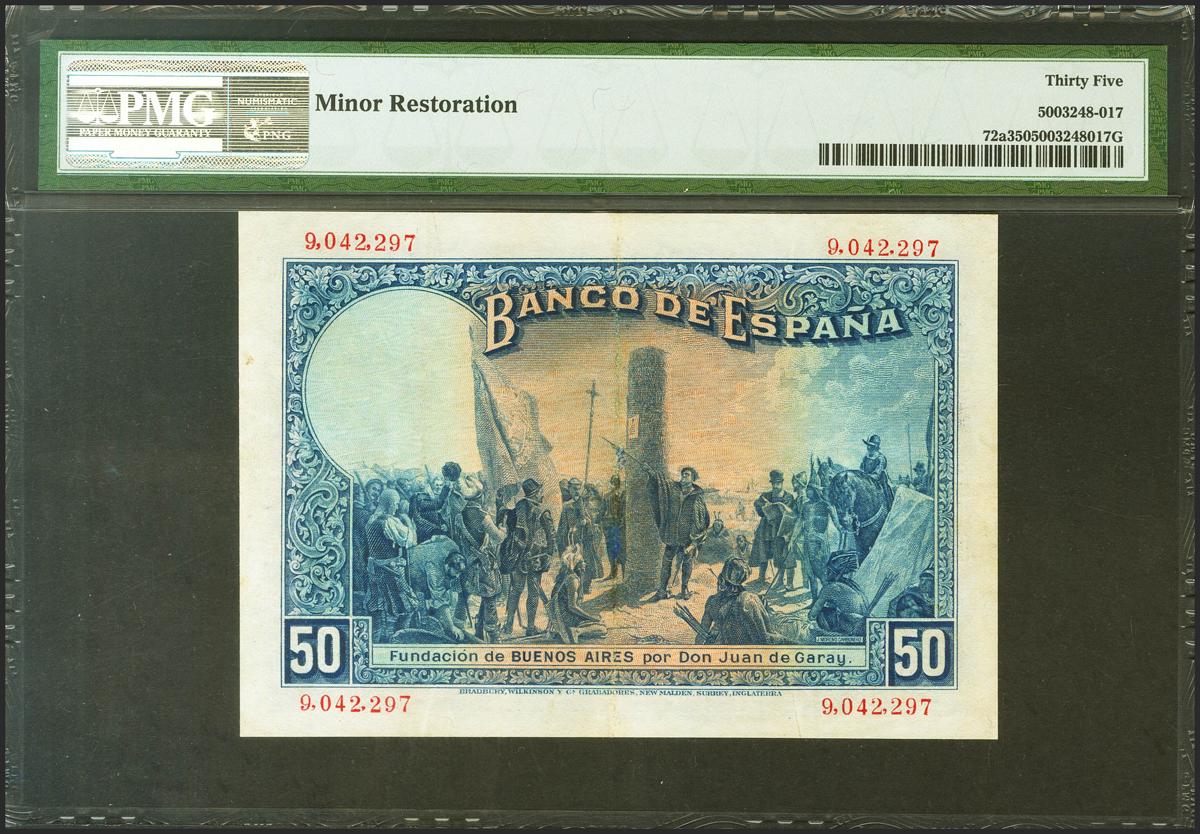 50 Pesetas. 17 de Mayo de 1927. Sin serie. (Edifil 2021: 326). Inusual. MBC+. Encapsulado PMG35.