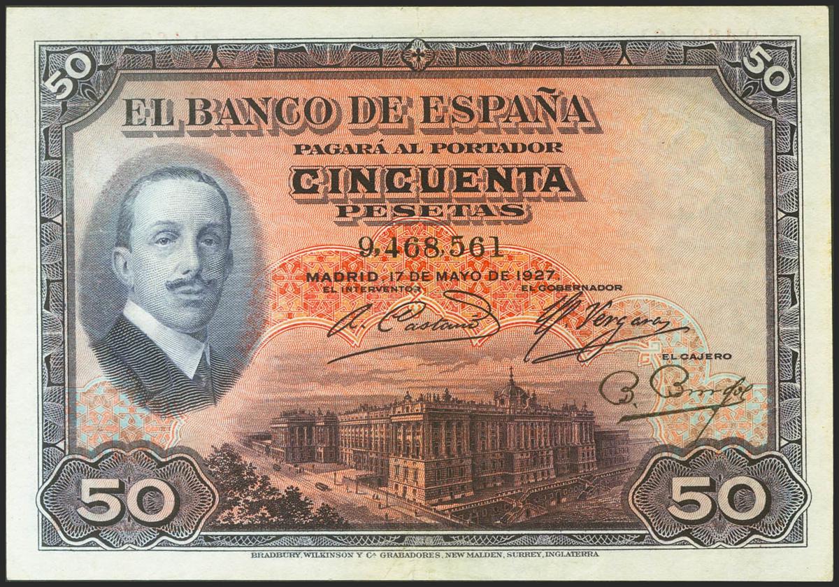 50 Pesetas. 17 de Mayo de 1927. Sin serie. (Edifil 2021: 326). MBC+.