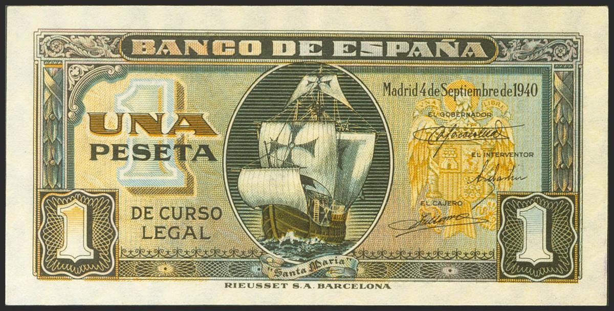 1 Peseta. 4 de Septiembre de 1940. Serie G. (Edifil 2021: 442a). Conserva todo su apresto original. SC.
